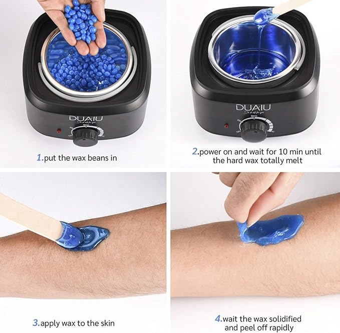 【Multifunctional use wax warmer】 This wax melt is perfect for wax beans and also supports canned wax, hard wax, wax blocks. The wax can be used to remove unwanted hairs from any part of the body, including the face, armpits, and bikini line. And it works perfectly for sensitive skin.