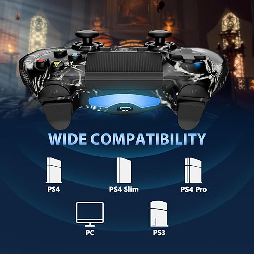 COMPATIBLE WITH Sony PlayStation 4 SERIES: This wireless controller is compatible with PlayStation 4/Pro/Slim.(Please activate the device with a USB cable for the first match connection).