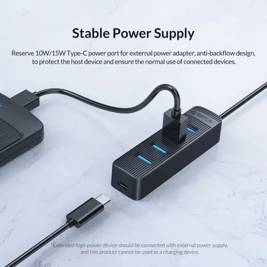 ORICO USB 3.0 hub with 4 USB-A ports – additional USB-C power supply